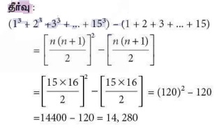 15. (13 + 23 + 33 + ... + 153) - (1 + 2 + 3 + ... + 15) யின் மதிப்பு