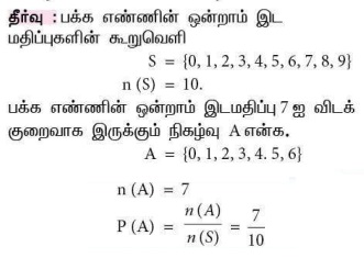 11. ஒரு புத்தகத்திலிருந்து சமவாய்ப்பு முறையில் ஒரு பக்கம் தேர்ந்தெடுக்கப்படுகிறது. அந்தப் பக்க எண்ணின் ஒன்றாம் இட மதிப்பானது 7-ஐ விடக் குறைவாக இருப்பதற்கான நிகழ்தகவானது