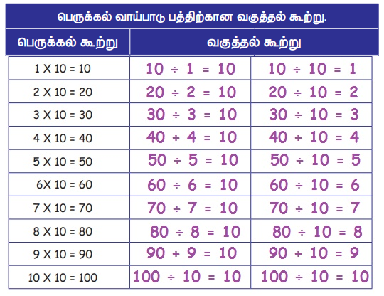பெருக்கல் வாய்பாடு பத்திற்கான வகுத்தல் கூற்றை எழுதுக.
