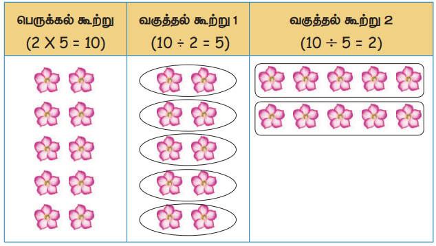 கொடுக்கப்பட்டுள்ள பெருக்கல் கூற்றுகளுக்கு வகுத்தல் கூற்றுகளைக் கண்டறிதல்.