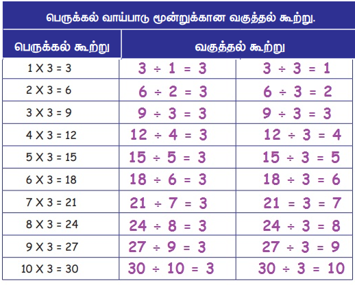 பெருக்கல் வாய்பாடு மூன்றுக்கான வகுத்தல் கூற்றை எழுதுக.