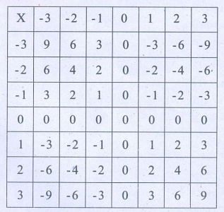 2. கீழ்க்காணும் அட்டவணையில் நிரல் மற்றும் நிறையில் உள்ள முழுக்களைப் பெருக்கி அட்டவணையை நிரப்புக.