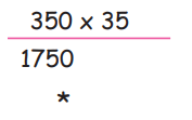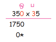 படி 2: பெருக்கிப் போடப்பட்ட ஒன்றாம் இடமதிப்பின் கீழே ஒன்றாம் இடத்தை அடைத்துகொள்ள நட்சத்திர குறி போட வேண்டும்.