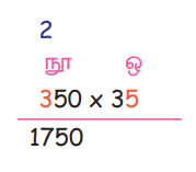 படி 1: பெருக்கப்பட வேண்டிய எண்ணை ஒன்றாம் இடமதிப்பில் உள்ள இலக்கத்துடன் பெருக்க வேண்டும்.