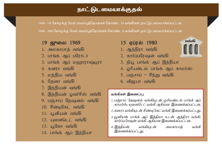இந்தியப் பொருளாதாரம் - வங்கிகள் தேசியமயமாக்கப்படல் | 11th Economics : Chapter 8 : Indian Economy Before and After Independence