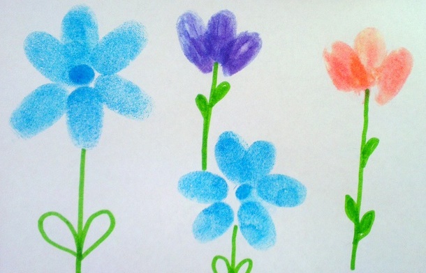 உங்களுக்குப் பிடித்த வண்ணத்தை ஆள்காட்டி விரலால் தொட்டு வையுங்கள். ஒரே ஒரு கோடு நடுவில் போடுங்கள். பூச்செடி தயார்.