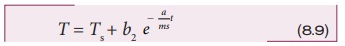 3 நிமிடங்களில் சூடான நீரின் வெப்பநிலை 8°C குறைந்துள்ளது. 92°C மற்றும் 84°C இன் சராசரி வெப்பநிலை 88°C. இது அறை வெப்பநிலையைவிட 61°C அதிகமாக உள்ளது. சமன்பாடு (8.8) ஐப் பயன்படுத்தினால்