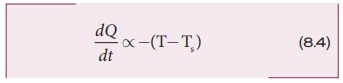 படம் 8.12 இல் காட்டப்பட்டுள்ள வரைபடத்திலிருந்து தொடக்கத்தில் குளிர்வு வீதம் அதிகமாகவும் பின்னர் வெப்பநிலை குறையக்குறைய குறைவாகவும் உள்ளதை தெளிவாக உணரலாம்.