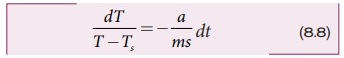 m நிறையும், s தன்வெப்ப ஏற்புத்திறனும் உள்ள பொருளொன்றைக் கருது. அதன்வெப்பநிலை T என்க . சூழலின் வெப்பநிலையை Ts என்க. dt என்ற சிறிய நேர இடைவெளியில் ஏற்பட்ட வெப்பநிலைக்குறைவு dT எனில் வெப்ப இழப்பின் அளவு