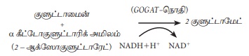 குளுட்டாமைன் α - கீட்டோகுளூட்டாரிக் அமிலத்துடன் வினைபுரிந்து இரண்டு மூலக்கூறு குளுட்டாமேட்டை உருவாக்குகிறது.