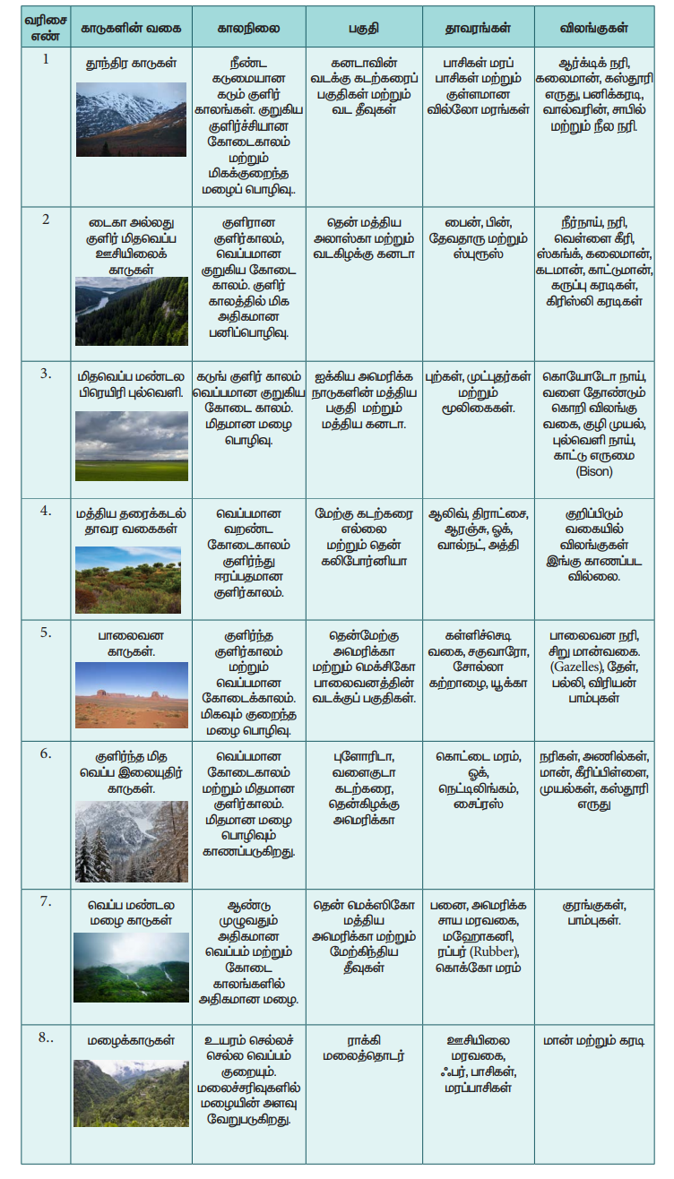 வட அமெரிக்கக் கண்டத்தில் காணப்படும் காடுகளின் வகைகள், தாவரங்கள் மற்றும் விலங்குகள்