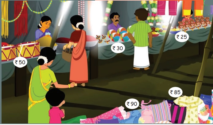 குழலினி, அவள் தாயுடன் கடைவீதிக்குச் செல்கிறாள். அங்கு, அவள் எல்லாப் பொருள்களிலும் விலைகள் கொண்ட மதிப்பீட்டு வில்லைகள் (Price Tags) கட்டப்பட்டிருப்பதைக் காண்கிறாள். தன் தாயிடம் அதைப் பற்றிக் கேட்டறிந்தாள். அவர்களிடம் உள்ள பணத்தைக் கொண்டு பொருட்கள் வாங்க உதவவும்.