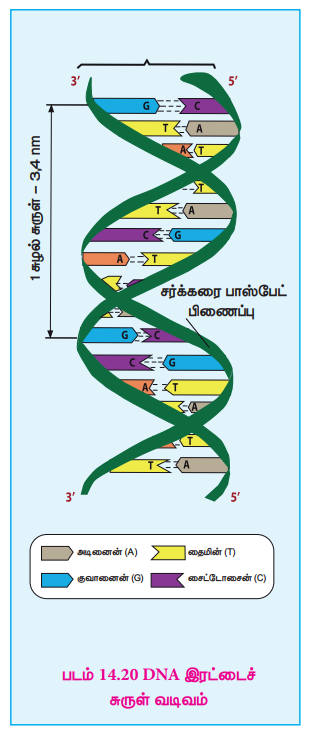 அட்டவணை 14.3 DNA மற்றும் RNA ஆகியவற்றுக்கு இடையேயான வேறுபாடுகள்