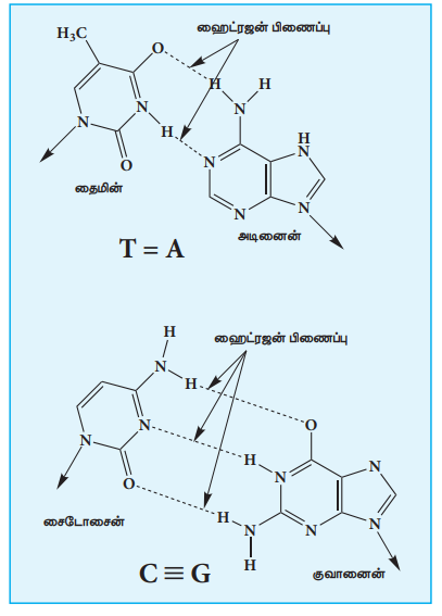 a) நிரப்பு கார இணைகளுக்கிடையே உருவாகும் ஹைட்ரஜன் பிணைப்புகள்