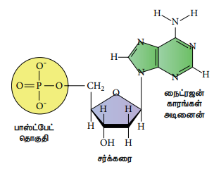 நியுக்ளியோசைடு + பாஸ்பேட் அமிலம் → நியுக்ளியோடைடு