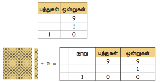 9 உடன் 1 ஐ கூட்டும் போது நமக்கு 10 கிடைக்கிறது.