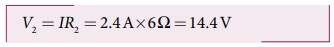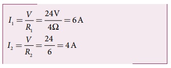 மின்சுற்றில் பாயும் மின்னோட்டம் = V/Req = 24/10 = 2.4 A