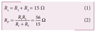 இரண்டு மின்தடையாக்கிகள் தொடரிணைப்பு மற்றும் பக்க இணைப்புகளில் இணைக்கப்படும் போது தொகுபயன் மின்தடைகள் முறையே 15 Ωமற்றும் 56/15 Ωஎனில் தனித்தனி மின்தடைகளின்மதிப்புகளை காண்க.