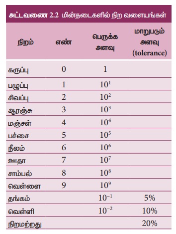 மின்தடைகளின் நிறக்குறியீடுகளை காணும்போது