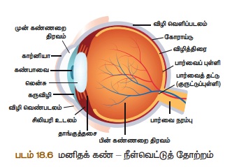 அமைப்பை அறிவது அவசியமாகிறது. மனிதனின் கண்ணானது பல்வேறு பாகங்கள் இணைந்து கோள வடிவமாக