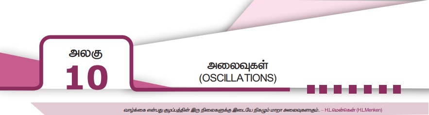 தஞ்சாவூர் நடனப் பொம்மையை [தஞ்சாவூர் தலையாட்டி பொம்மை] நீங்கள் பார்த்திருக்கிறீர்களா? இது ஓர் உலகப் புகழ்பெற்ற தமிழகக் கலாச்சாரத்தைப் பிரதிபலிக்கும் பொம்மையாகும். இந்த பொம்மையை ஆட்டிவிட்டால் உடல் தொடர்ச்சியாக முன்னும் பின்னும் இயங்கி, பின்னர் இயக்கம் படிப்படியாக குறைந்து நிற்கிறது. இதே போல் நாம் சாலையில் நடக்கும் பொழுது, நம்முடைய கைகளும், கால்களும் முன்னும் பின்னும் இயக்கத்தை மேற்கொள்ளும் போது நிகழும். தாய் தன் குழந்தையை தூங்க வைப்பதற்காக தொட்டிலை ஆட்டும் பொழுது தொட்டிலானது முன்னும் பின்னும் இயக்கமடையும். முன்னர் (Volume 1) விவாதித்த இயக்கங்களிலிருந்து இவ்வகையான அனைத்து இயக்கங்களும் வேறுபட்டவை. இந்த இயக்கங்கள் படம் 10.2 இல் விளக்கமாகக் காட்டப்பட்டுள்ளன. இத்தகைய இயக்கங்களை அலைவுறு இயக்கம் அல்லது அதிர்வுறு இயக்கம் என்று அழைக்கின்றோம். கூட நிகழ்கின்றது.