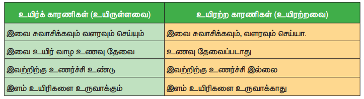 ❖ உயிர்க் காரணிகளை உயிரற்ற காரணிகளுடன் வேறுபடுத்தி அறிதல்