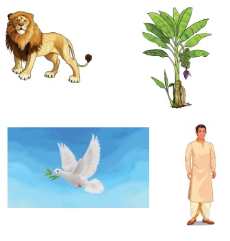 எ.கா. சிங்கம், வாழைமரம், புறா, மனிதன்.
