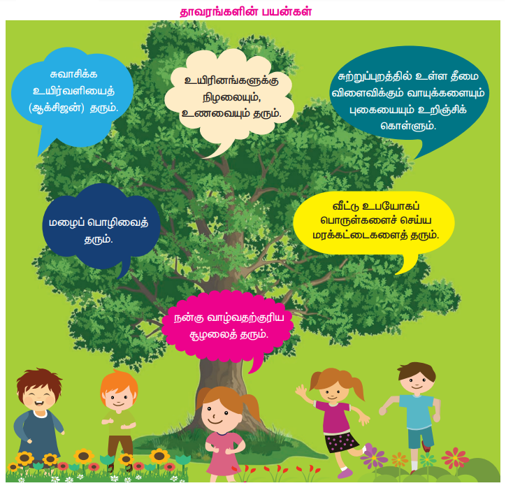 2. தாவரங்கள் சுற்றுச் சூழலைப் பாதுகாத்து மனிதர்கள் வாழ வழிவகுக்கின்றன.