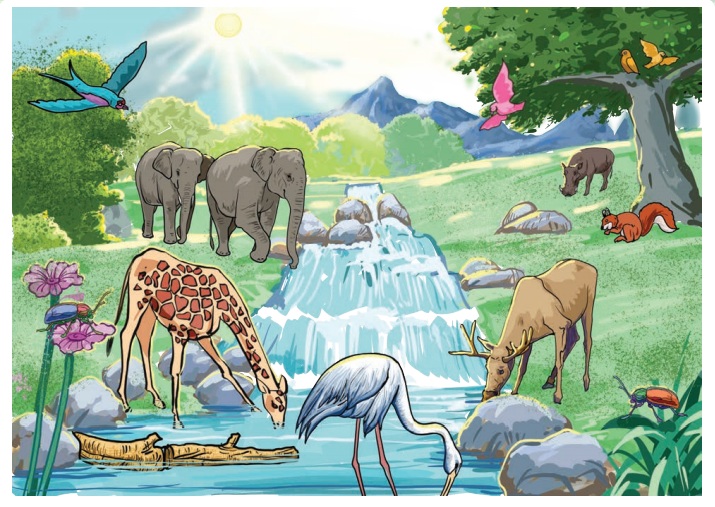 1. பறவைகள் : நீர் , காற்று , சூரிய ஒளி, மண்.