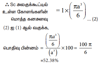 பொதிவு பின்னம் = (πa3/6) / (a3 ) × 100= 100π / 6