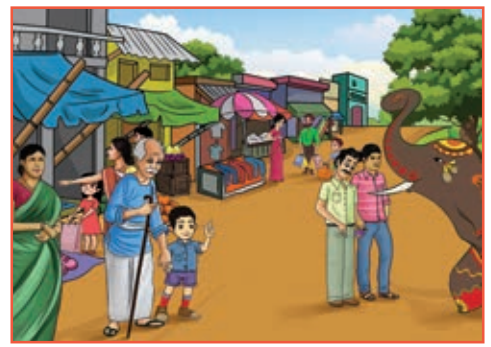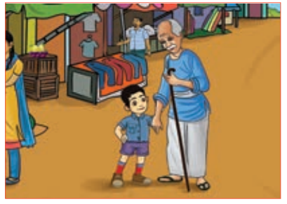 அமுதவாணன் தன் தாத்தாவுடன் வாரச் சந்தைக்குச் சென்றான்.