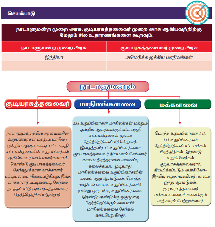 நாடாளுமன்ற முறை அரசு, குடியரசுத்தலைவர் முறை அரசு ஆகியவற்றிற்கு மேலும் சில உதாரணங்களை கூறவும்.
