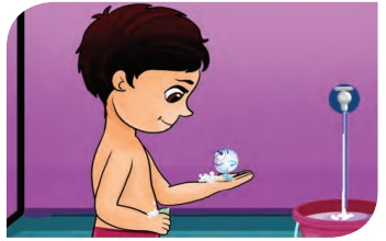 கையிலிருந்து பாட்டுச் சத்தம் கேட்டது. திடுக்கிட்டுத் தன் கையைப் பார்த்தான். கை, கால்கள் முளைத்த வண்ணக்குமிழி ஒன்று அவன் கையில் இருந்தது. சிட்டியைப்