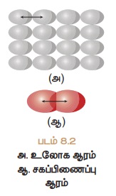 உள்ள தூரத்தின் பாதியே உலோக ஆரம் எனப்படும். படம் 8.2