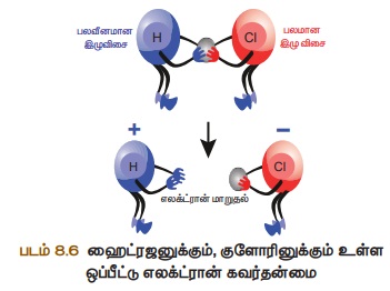 எலக்ட்ரான்களை ஹைட்ரஜன் விட, குளோரின் அணு தன்னை நோக்கி