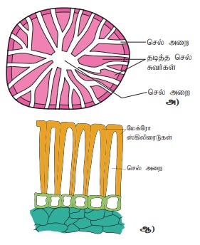 அடுக்குகளாக அல்லது வரிசையாக அமைந்துள்ளன. இச்செல்களில் பரிதி இணைப்போக்கு சுவர்கள்