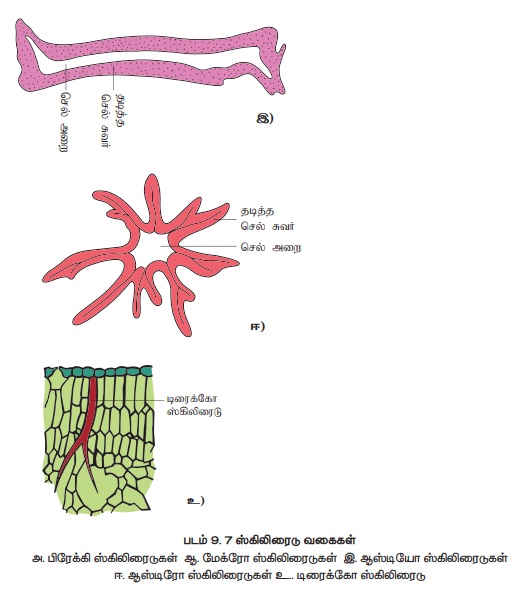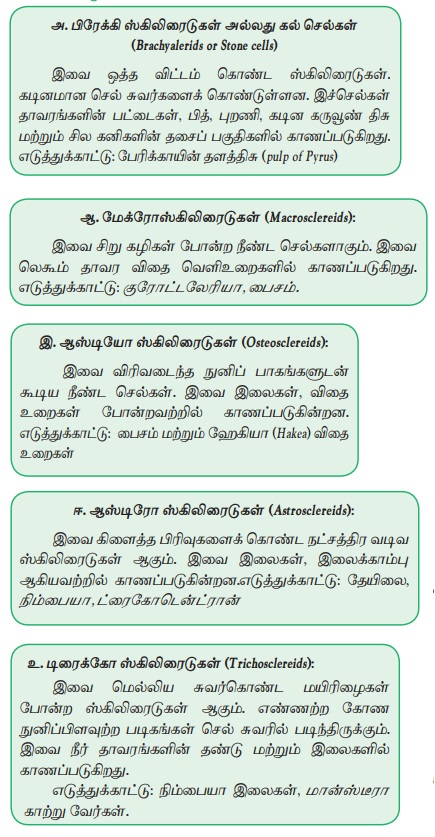 கடினமான செல் சுவர்களைக் கொண்டுள்ளன. இச்செல்கள் தாவரங்களின் பட்டைகள், பித், புறணி,