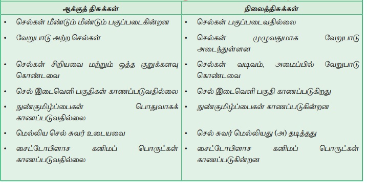 திசுக்கள் நிலைத்திசுக்களுக்கிடையேயான வேறுபாடுகள்