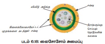 இந்த நொதிகளால் லைசோசோம்கள் அழிந்து போவதைத் தவிர்க்கிறது. (படம் 6.18).