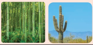மூங்கில் பசுமைமாறாப் புல் வகையாகும். சில சிற்றினங்கள் V நாள் ஒன்றுக்குச் 91 செ.மீ. வீதம் வளரும் தாவரங்களாகும். கள்ளித் தாவரங்கள் (காக்டஸ்கள்) மரம் போன்ற மற்றும் மிகவும் மெதுவாக வளரும் தாவரங்களாகும். எடுத்துக்காட்டாகச், சகுவாரோ (Saguaro) என்ற கள்ளித் தாவரத்தின் வளர்ச்சிவீதம் முதல் பத்து ஆண்டுகளுக்கு ஒரு அங்குலம் ஆகும். மேலும் இத்தாவரம் 60 ஆண்டுகள் வரை மலராதிருக்கிறது. இதனுடைய ஆயுட்காலம் 150 ஆண்டுகளுக்கு மேலாக உள்ளது. மேலும் இதன் பக்கக் கிளைகள் வளர 75 - 100 ஆண்டுகள் வரை எடுத்துக்கொள்கிறது.
