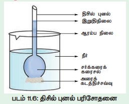 2. இக் குழியில் அடர் சர்க்கரை கரைசலை நிரப்பி அதன் ஆரம்ப அளவினை குறிக்க வேண்டும்