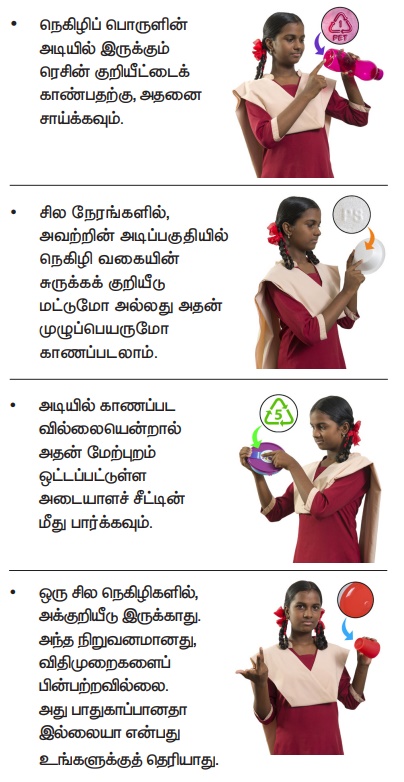 ● நெகிழிப் பொருளின் அடியில் இருக்கும் ரெசின் குறியீட்டைக் காண்பதற்கு,