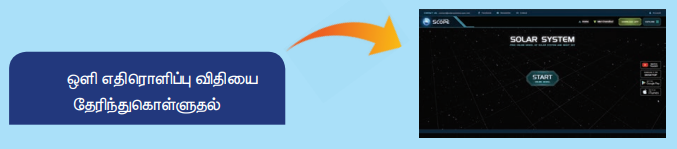படி 3: Side ன் மேல் icon ஐ செய்க. மேலும் பட்டனை Click செய்க. RUN INTRO பட்டனை Clickசெய்க இப்போது சூரிய குடும்பம் மற்றும் பிரபஞ்சத்தின் பல்வேறு காட்சிளைக் காணலாம்.