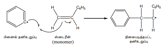 தனிஉறுப்பு நிலைப்படுத்தப்பட்ட தனி உறுப்பானது மற்றொரு ஒற்றைப்படி மூலக்கூறை தாக்கி நீட்டப்பட்ட தனி உறுப்பை உருவாக்குகிறது.