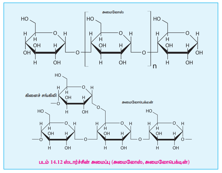 படம் 14.12 ஸ்டார்ச்சின் அமைப்பு (அமைலோஸ், அமைலோபெக்டின்)