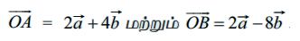 என்க. A மற்றும் B−யை இணைக்கும் கோட்டுத்துண்டினை 1 : 3 என்ற விகிதத்தில் உட்புறமாகவும், வெளிப்புறமாகவும் பிரிக்கும் புள்ளிகளின் நிலை வெக்டர்களைக் காண்க.
