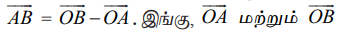 O ஆதிப்புள்ளி மற்றும் A மற்றும் B−ன் நிலை வெக்டர்கள் முறையே