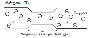 ஓர் மின்சுற்றில் இணைக்கப்படும் மின்தடையானது அந்த மின்சுற்றில் பாயக்கூடிய மின்னூட்டத்தின் இயக்கத்தை எதிர்க்கும் அல்லது தடுக்கும் ஓர் மின் உறுப்பு ஆகும், நீரோட்டம் பாயும் வீதத்தை ஓர் குறுகிய வழியானது எவ்வாறு பாதிக்கின்றதோ அவ்வாறே மின் உறுப்பான மின்தடையானது மின்னூட்டம் பாயும் வீதத்தை எதிர்க்கும்.