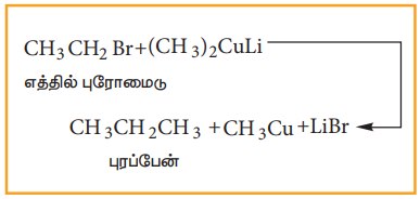 ஆல்கைல் ஹாலைடும், லித்தியம் டை ஆல்கைல் குப்ரைட்டும் வினைபட்டு உயர் ஆல்கேனைத் தருகின்றன.