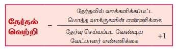 -குடியரசுத்தலைவர் தேர்தலில் வாக்களித்த மொத்த வாக்காளர்கள் 10,00,000 பேர் ஆகவும் மற்றும் தேர்ந்தெடுக்கப்பட வேண்டிய வேட்பாளர்களின் எண்ணிக்கை ஒன்று என்பதாகவும் இருந்தால் தேர்தல் வாக்குகளின் ஒதுக்கீடு எப்படி இருக்கும் என்று கண்டுபிடி.